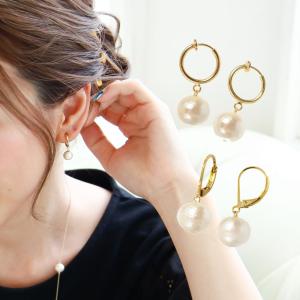 Cuiller ホワイトパールピアス / イヤリング《8ミリ/10ミリ》 フェイスラインを美しく魅せるスプーンフック