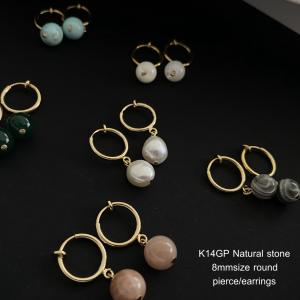 天然石 ラウンド ピアス イヤリング 1粒 8mm 16種類 ナチュラル 日本製 ニッケルフリー K14GP 淡水パール オニキス クォーツ