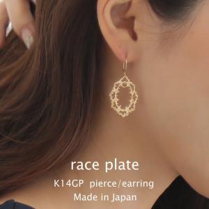 日本製 透かしレース ピアス イヤリング K14GP メタル レース