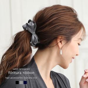 グログランリボン バレッタ ボリューム 三重 トリプル
