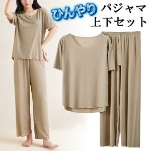 パジャマ レディース 夏 半袖 上下セット ルームウェア 部屋着 冷感 通気性 ゆったり 肌に優しい 接触冷感 ひんやり 涼しい 快適春・夏・秋 ベージュ