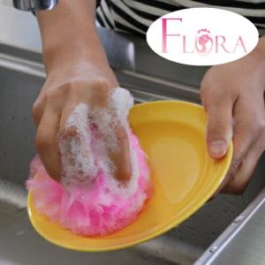 フラワータワシ☆フローラ【食器用1個】直径約10cm★ロングセラーの実演商品!泡立ち、水切れバツグンのナイロンタワシ!宅配便限定。