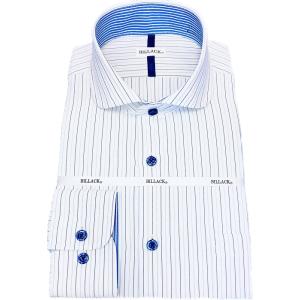 ワイシャツ 長袖 メンズ ドレスシャツ 形態安定 綿高混率 マイクロファイバー ピンストライプ ホリゾンタル ワイドカラー シャツ ビジネス お洒落着 KF2083-7