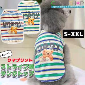 犬 服 犬服 ドッグウェア ペットウェア クマ くま プリント ボーダー 袖なし Tシャツ タンクトップ 秋 冬 春 春夏 抜け毛防止 オールシーズン
