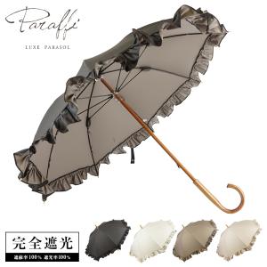 完全遮光 日傘 フリルパラソル Paraffi(パラフィ)遮光率100% UV遮蔽率100% 木棒 木手元 木製ハンドル ショート傘 紫外線カット UVカット 遮熱