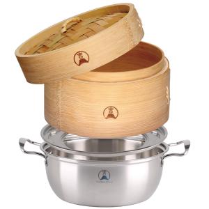 【吉冨士工芸】炭化竹せいろ 外径18cm1段(蓋付)IH対応鍋付き 蒸し器 中華 せいろ 天然竹 蒸し野菜 小籠包 ★送料無料