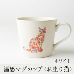 温感マグカップ お座り猫 ニューボン白【温感マグチタン 白 グレーズネコマグ 猫マグカワイイ ネコ好きマジッ温感マグカップ お座り猫 白 温感マグ