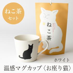 温感マグカップ お座り猫 ニューボン白 温感マグとねこ茶 ギフトセット 【丸モ高木 色が変わるマグカップ かわいい 贈り物 】緑茶 お茶 静岡茶
