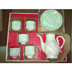 ティーポット 1つ ティーカップ ソーサー 5客 セット 受け皿 コースター 陶器 ラスター仕上げ 未使用 ★0047 B-2
