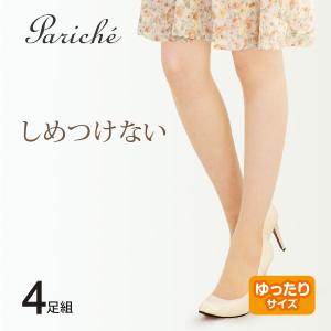 【ゆったりサイズ】ストッキング レディース しめつけない ストレスフリー ふんわり きめ細かい つま先補強 ポイント消化 4足組