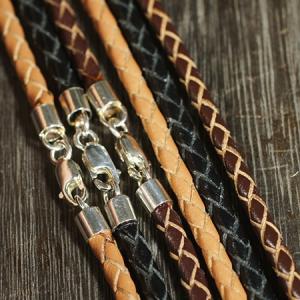 特別価格 編込みレザー&高品質シルバー チェーン 45cm ブラック、ダークブラウン、ライトブラウン|レザーチョーカー|ペンダント&ネックレス
