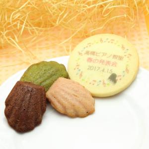 エレクトーン発表会 ピアノ発表会 記念品 音符模様 オリジナル 名入れクッキー&こぐまマドレーヌ、プチ焼き菓子3個セット メッセージ入り スイーツ
