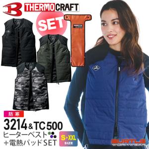 \P3倍/ バートル 3214+TC500 ヒーターベスト サーモクラフトセット BURTLE 【秋冬】 ベスト&電熱パッドセット 軽防寒 お買い得セット [バッテリー別売]