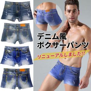 ボクサーパンツ デニム風 テレビで紹介されました ストレッチインナー 男性下着 ボクサーブリーフ プリント 通気性良い 快適 セール
