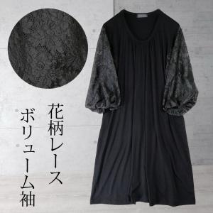 チュニック ワンピース 大きいサイズ ナチュラル 花柄 レース 50代 秋 夏 大人 Aライン カットソー ワンピ レディース 大きめ ゆったり オーバーサイズ 黒