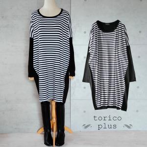 チュニック ワンピース ドルマン 切り替え 配色 チュニックワンピ ストライプ 配色 大きいサイズ トップス プルオーバー レディース