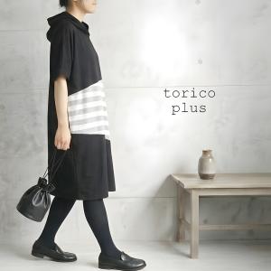 パーカー チュニック ワンピース 大きいサイズ 春 ボーダー 前後 配色 切り替え ワンピ ドルマン カットソー バイカラー ゆったり 重ね着 レディース トップス