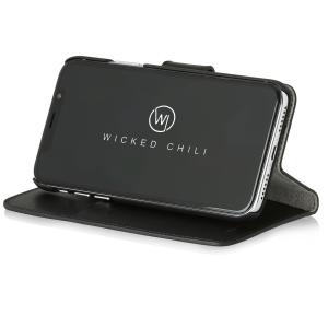 Wicked Chili by ドイツ ヨーロッパ産 高級牛革 プレミアム 本革 レザーケース 手帳型 マグネット式開閉 (Apple iPhone X)