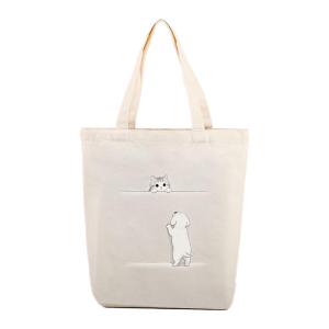 キャンバストートバッグ 猫プリント ナチュラルベージュ ショルダーバッグ 軽量 カジュアル BG00010