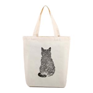 キャンバストートバッグ 猫指紋プリント ナチュラル ショッピングバッグ エコバッグ BG00013