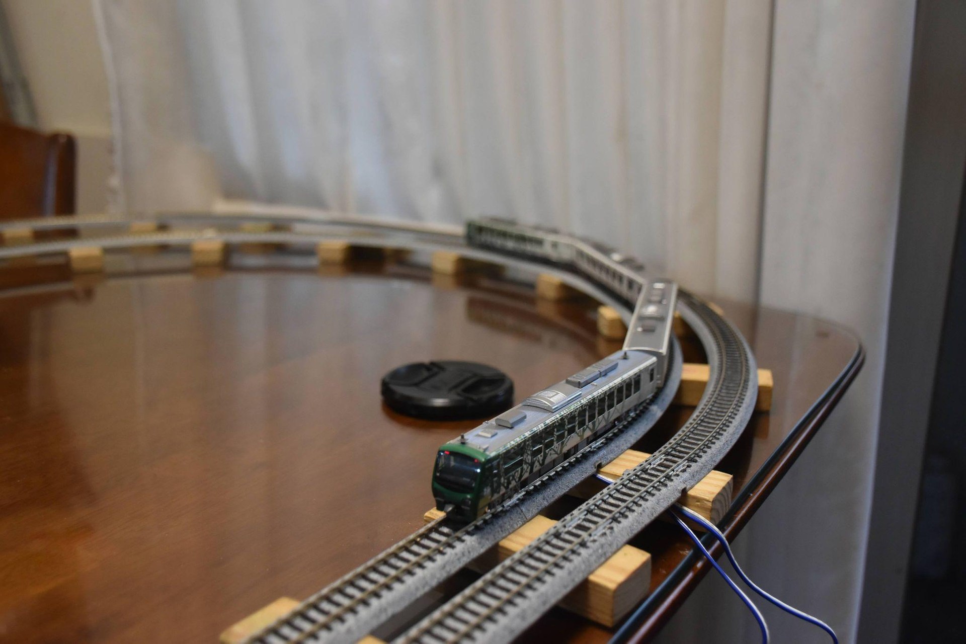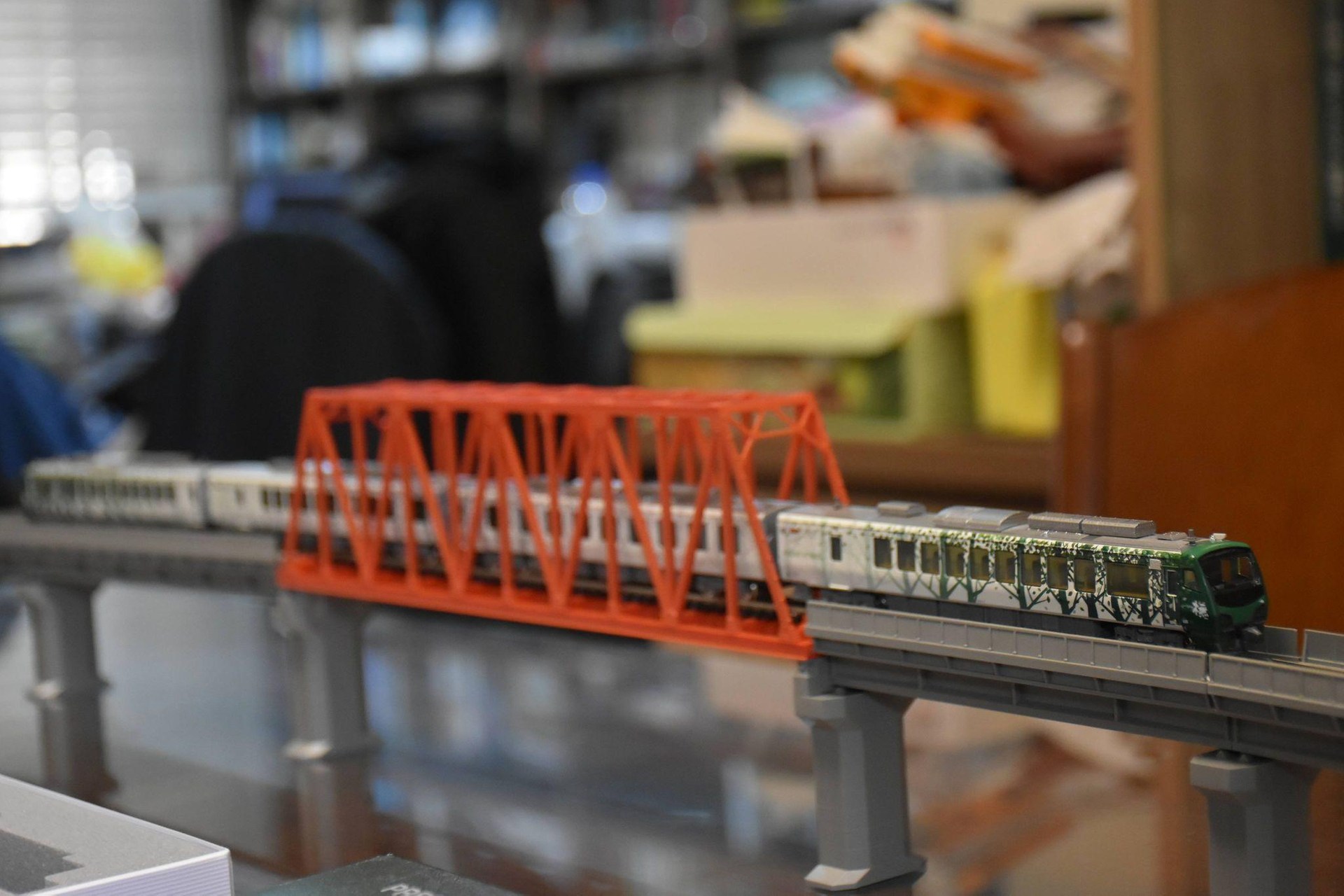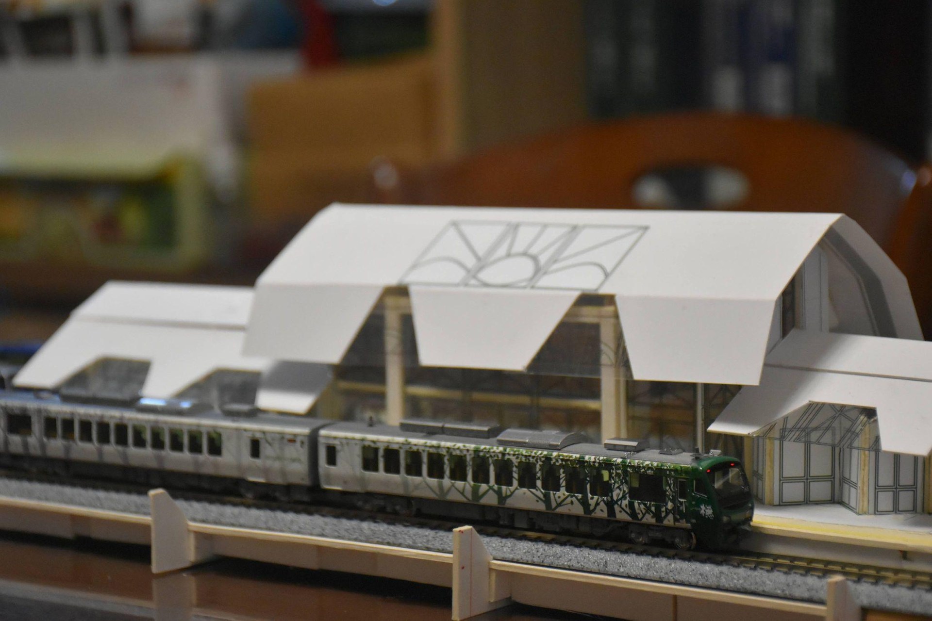 總計四節的列車組,剛好和自己設計、施作,新近落成的車站月台長度相當,