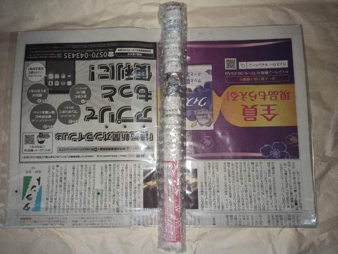 從下面的開箱圖可以看到賣家在寄送包裝之際,有使用一小條用泡棉包裹報紙形成的圓筒狀物品,