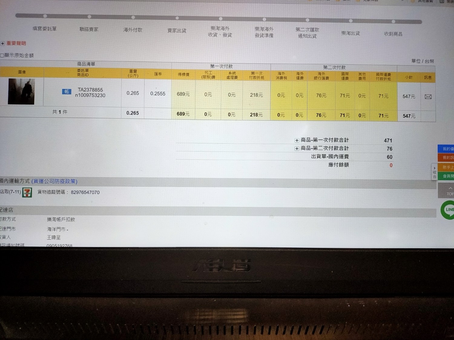 這次使用的是日本代購樂淘平台,由於是競標來的所以價格相當的便宜,