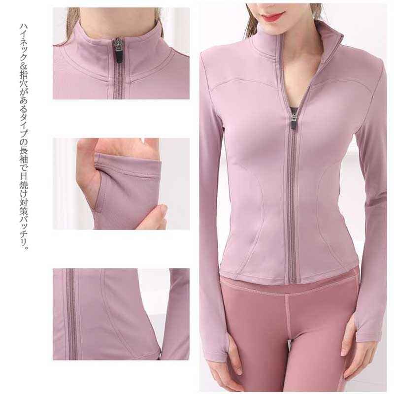・ハイネック&指穴があるタイプの長袖で日焼け対策バッチリ。