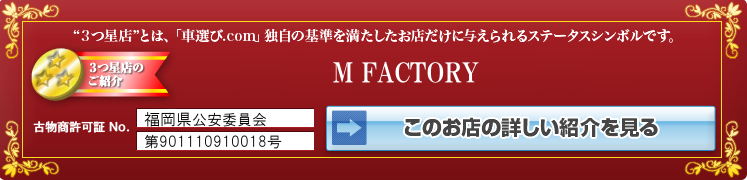 “3つ星店”とは「車選びドットコム」独自の基準を満たした販売店だけに与えられるステータスシンボルです。