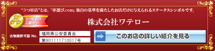 “3つ星店”とは「車選びドットコム」独自の基準を満たした販売店だけに与えられるステータスシンボルです。
