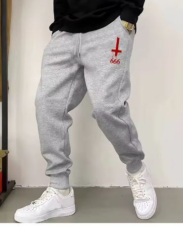 商品名稱 : 【新品・2XLサイズ・Grey R】メンズカジュアルスポーツパンツ悪魔逆十字架ジョガーパンツ アウトドア快適スウェットパンツ