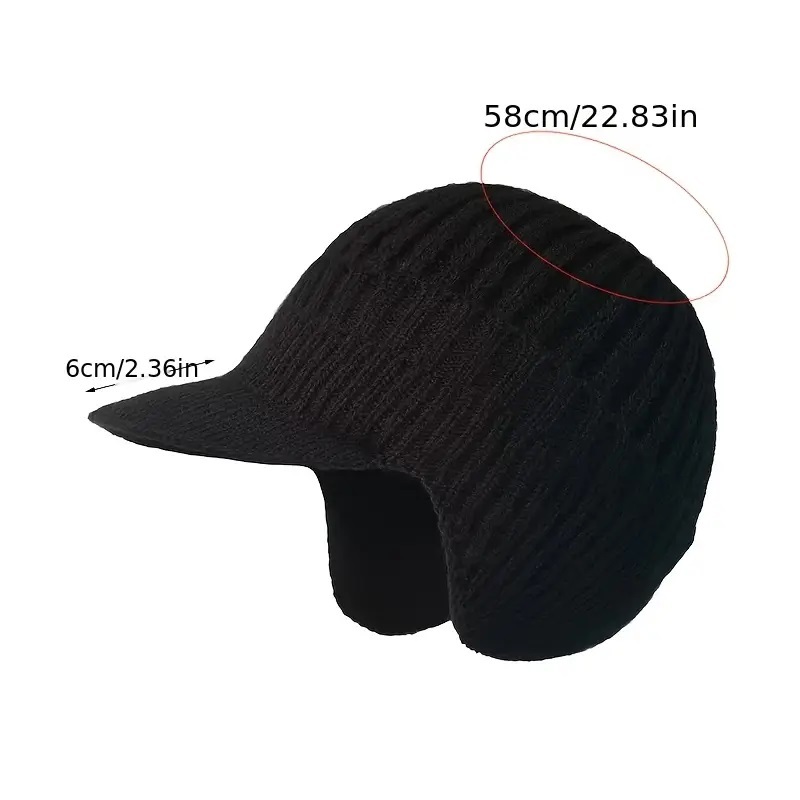 新品A6 防寒ウール混ニット帽耳当て一体 つば付き 裏地起毛 ネイビー