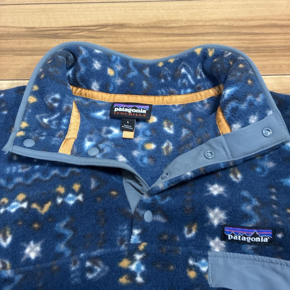 patagonia パタゴニア p6 シンチラスナップT プルオーバーフリース フリースジャケット ネイビー 民族柄 Lサイズ ほぼ新品