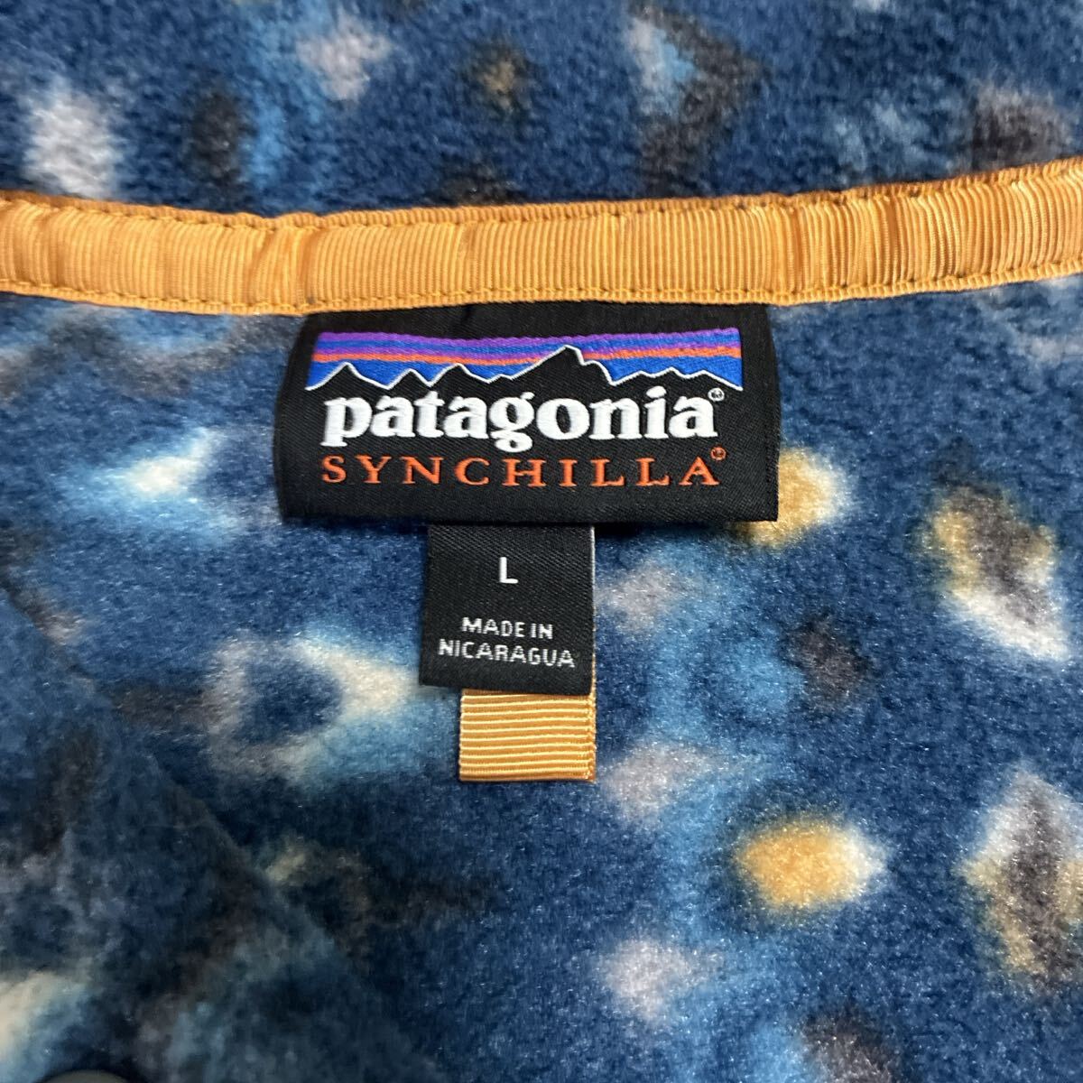 商品名稱 : patagonia パタゴニア p6 シンチラスナップT プルオーバーフリース フリースジャケット ネイビー 民族柄 Lサイズ ほぼ新品