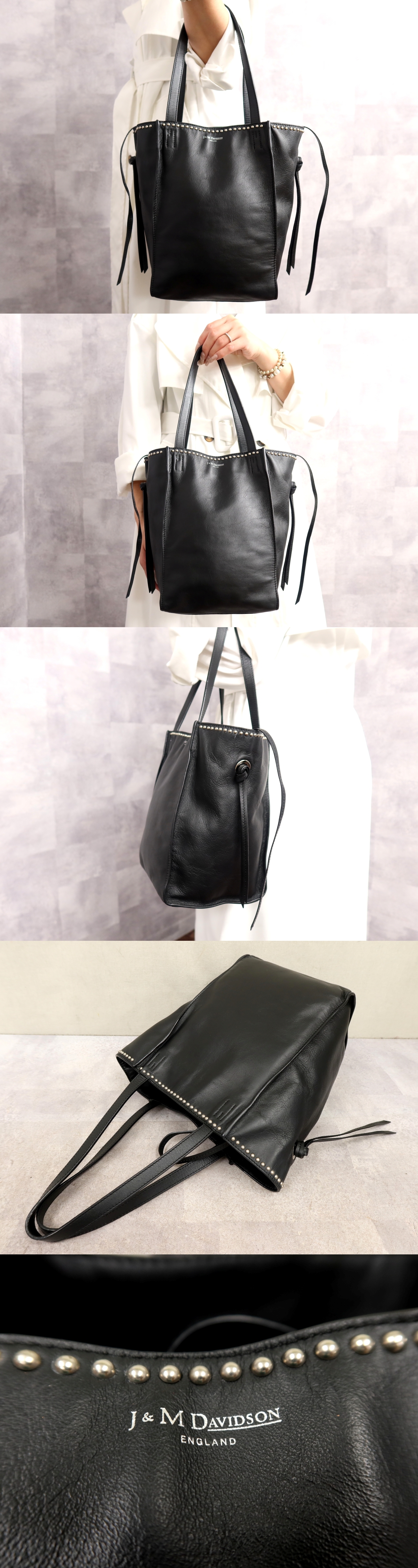 商品名稱 : ●超美品●J&M DAVIDSON デヴィッドソン●ベル ミニ ウィズ スタッズ●カーフ レザー 本革●トート バッグ●黒●シルバー金具●B5●Js66518