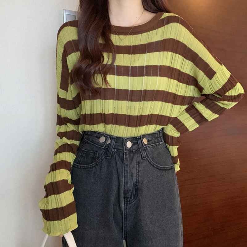 商品名稱 : ニットトップス ボーダー柄 リブニット ニットウエア ラウンドネック 普段着 ニットプルオーバー ワンサイズ ホワイト×ブルー